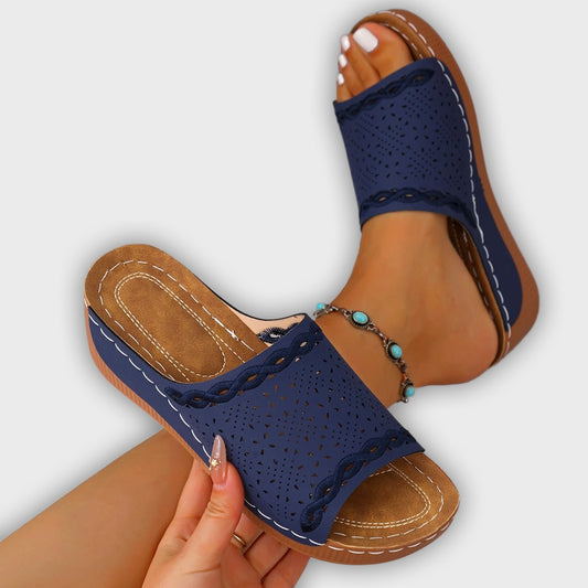 Grace Women’s Wedge Sandals – Slip-On – Perforated Strap – Scalloped Detail