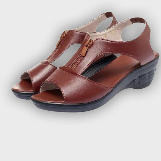 Lyra Women’s Wedge Sandals – Zipper Front – Cut-Out – Faux Leather