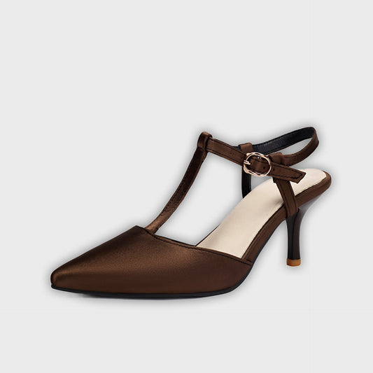 Eliza Women’s Heeled Sandals – Pointed Toe – T-Strap – Slim Fit – Faux Leather