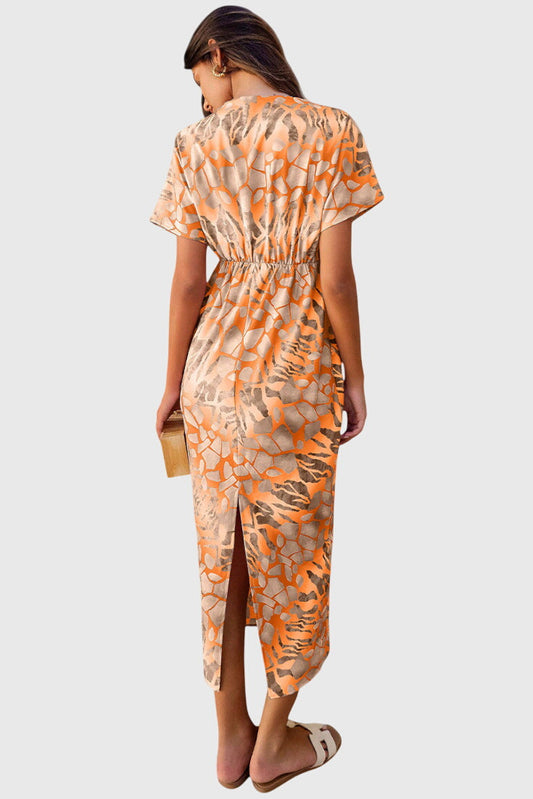Dresses with Abstract Print and V-Neck Exposure