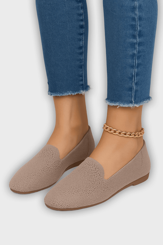 Elin – Women’s Slip-On Knit Loafers with Gold Chain Accent