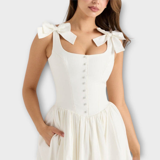 Ottilie Pleated Chiffon Dress with Sculpted Corset and Heart Neckline