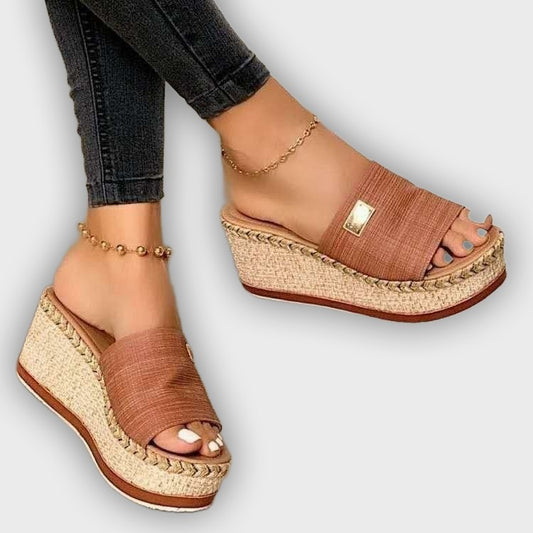 Ella Women’s Wedge Sandals – Slip-On – Fabric Upper – Woven Heel