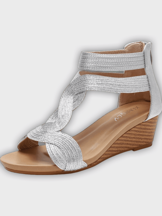 Emily Women’s Wedge Sandals – Woven Crisscross Straps – Back Zipper – Open Toe