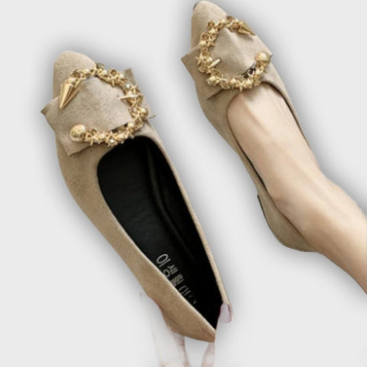Léonie Women’s Pointed Flats – Embellished Buckle – Slip-On – Soft Fit