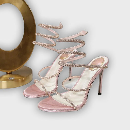 Seraphina Women’s Strappy High Heels – Crystal Spiral – Stiletto Sandals