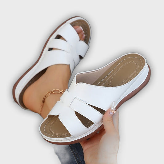Sophie Women’s Wedge Slide Sandals – Cut-Out – Open Toe – Casual Comfort