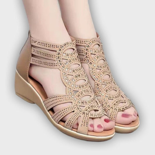 Lyra Women’s Wedge Sandals – Zipper Front – Cut-Out – Faux Leather