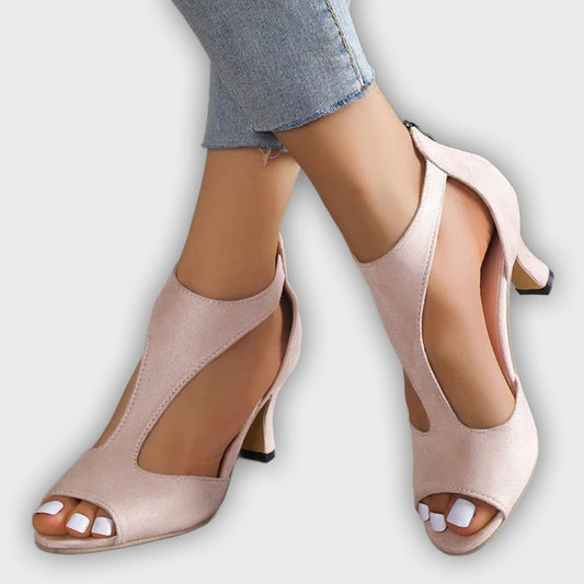 Women’s Suede Peep-Toe Stiletto Sandals – Cutout Detail & Elegant Heel