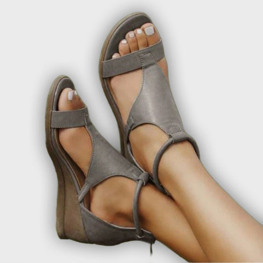Elena Women’s Wedge Sandals – Open Toe – T-Strap – Ankle Strap – Casual Fit