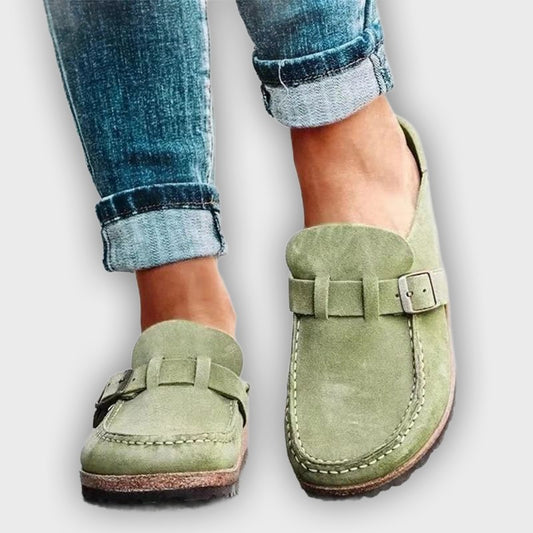 Tessa Women’s Mule Sandals – Suede Look – Buckle Strap – Low Heel
