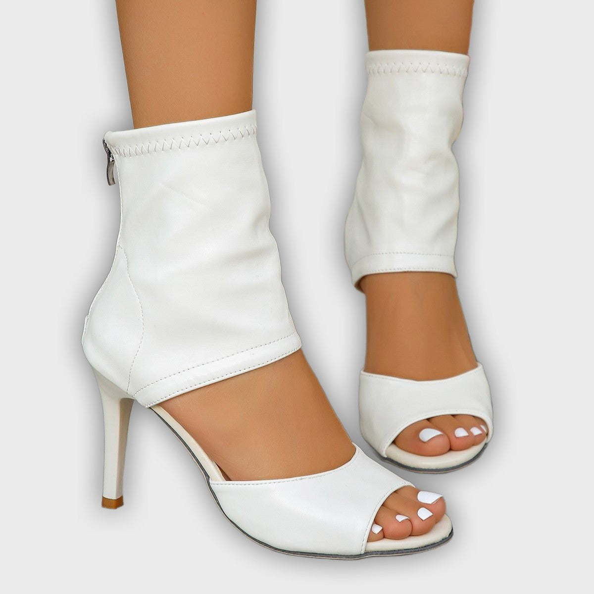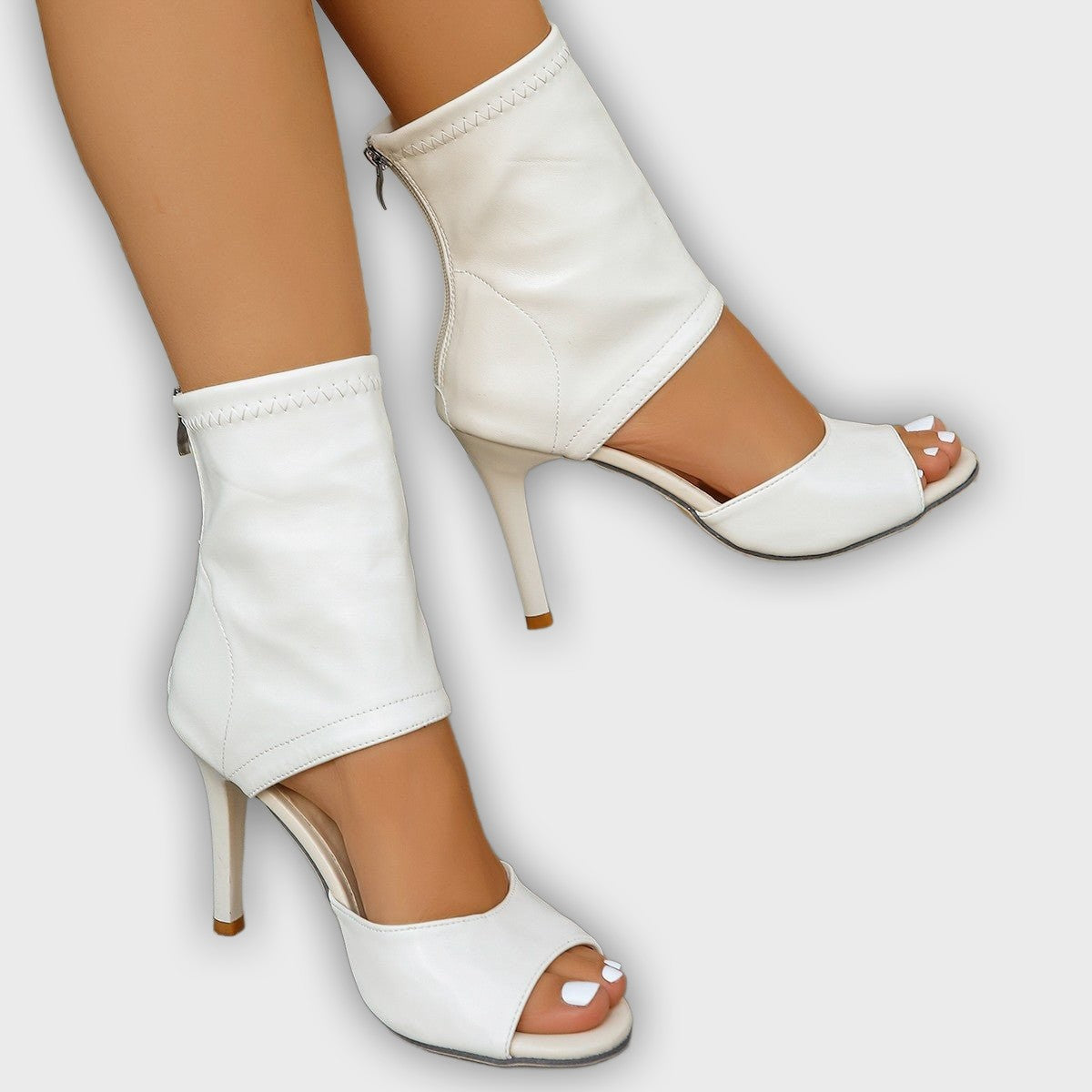 Ashford | Alvhild – Women’s Peep Toe Ankle Boots Back Zip, High Heel, Polished PU Leather