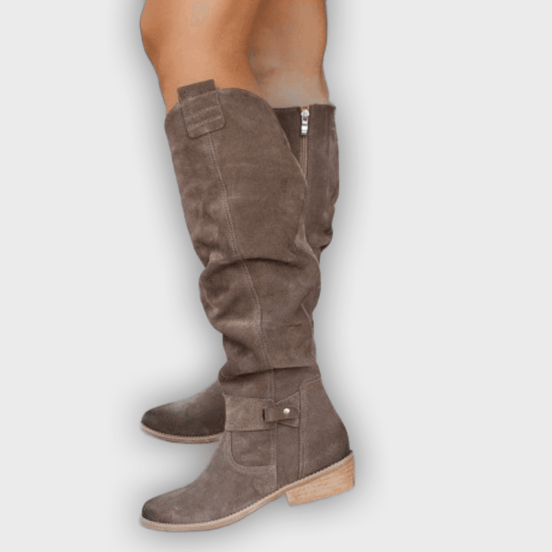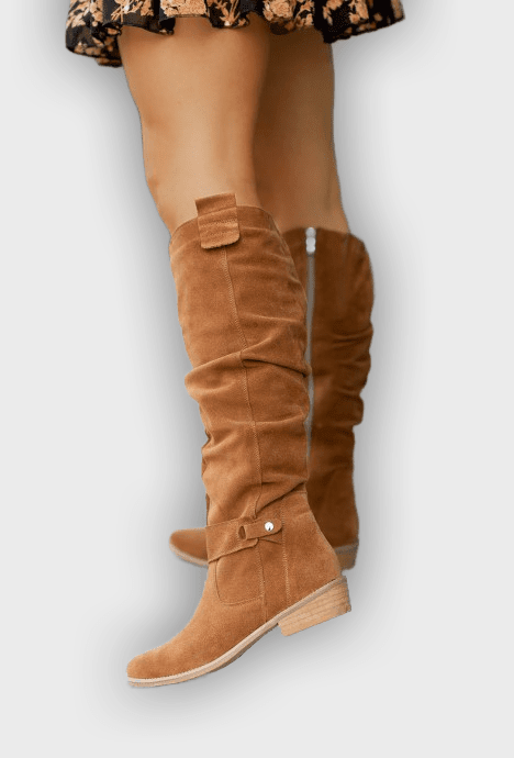 Soft, stylish and effortlessly elegant – these knee-high boots are made to be your everyday essential. With their suede-like texture, round toe and subtle buckle detail, they strike the perfect balance between comfort and sophistication. The low heel offers just the right lift for daily wear, while the side zipper adds practicality without compromising style. Whether you're dressing for errands or adding polish to your day-to-night look, these boots make it all feel easy.