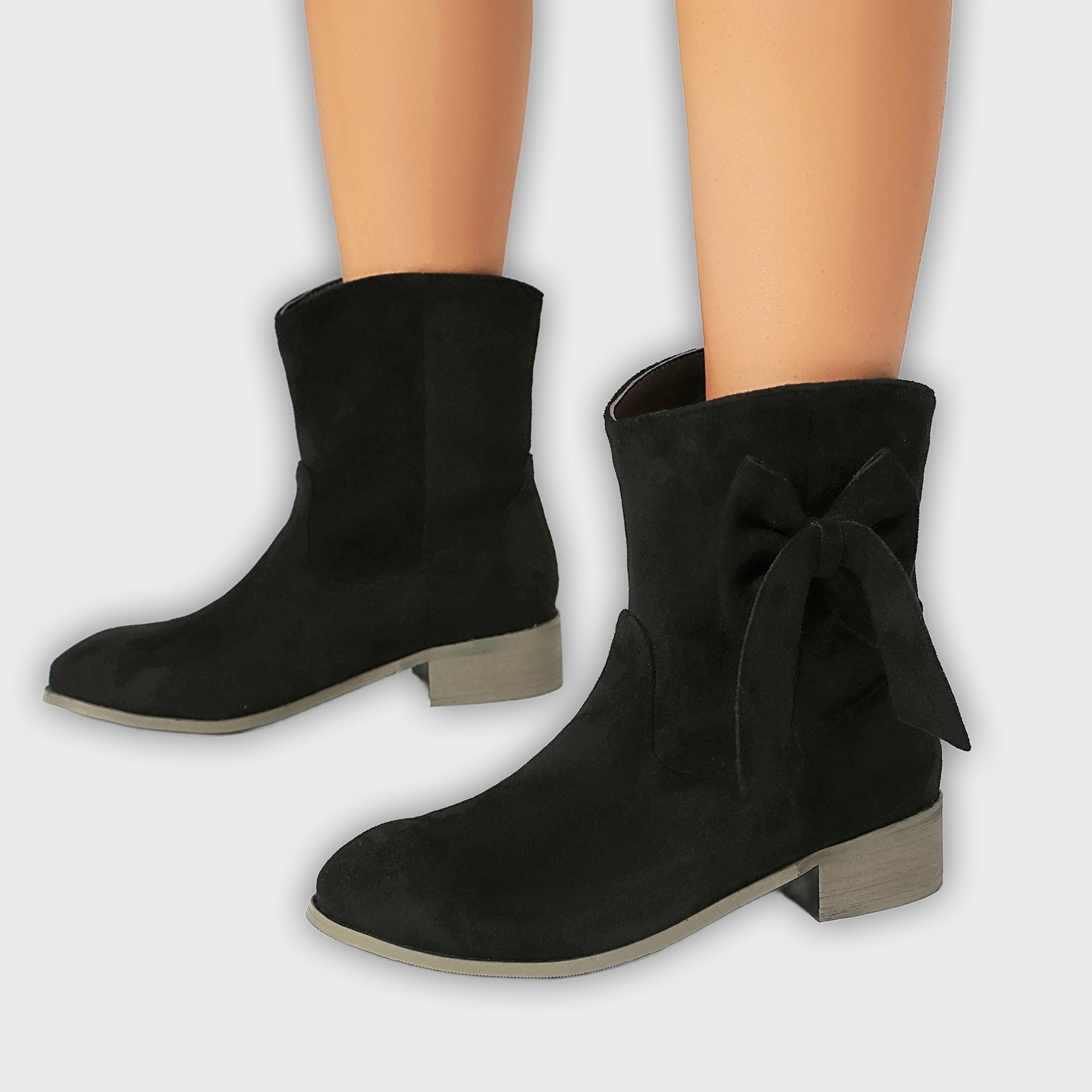 Kirsty – Women’s Short Suede-Inspired Boots with Decorative Bow – Low Heel