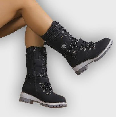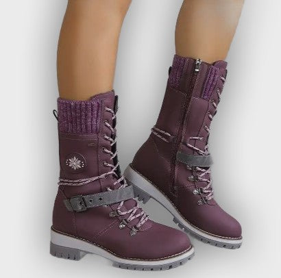 Linnea – Women’s High-Top Lace-Up Winter Boots with Knitted Cuff & Rugged Sole