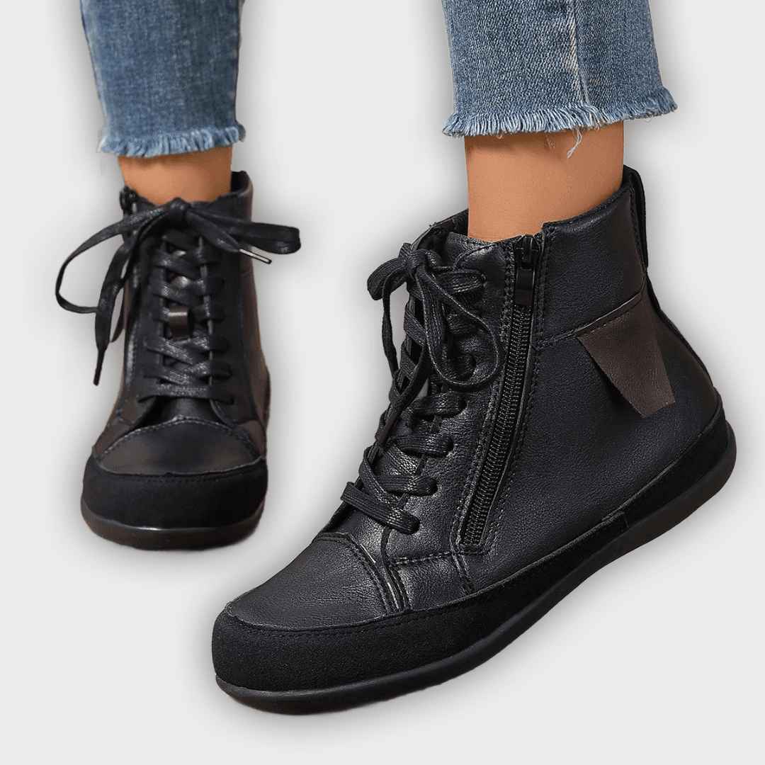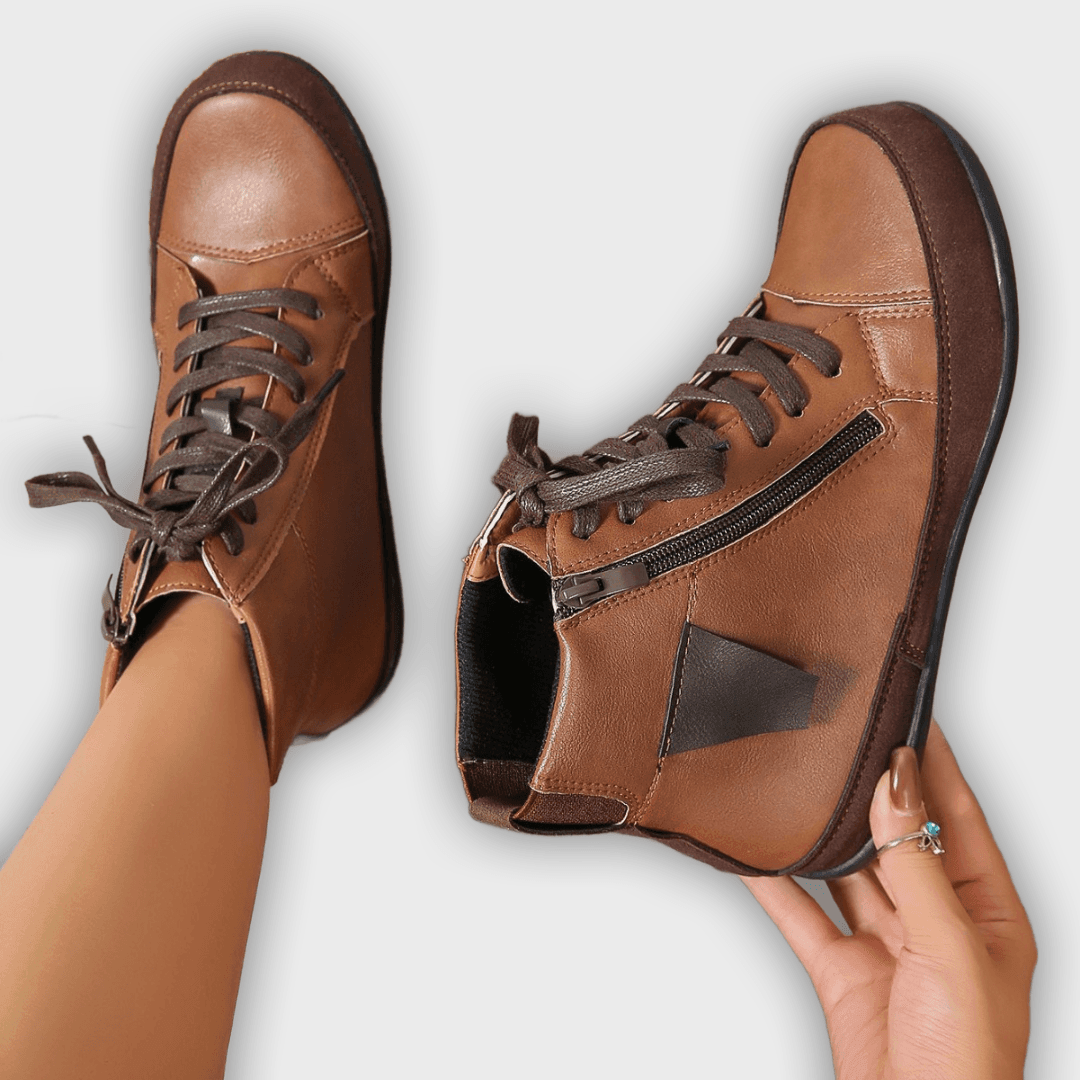 Miriam – Women’s Leather Ankle Boots with Side Zipper & Round Toe
