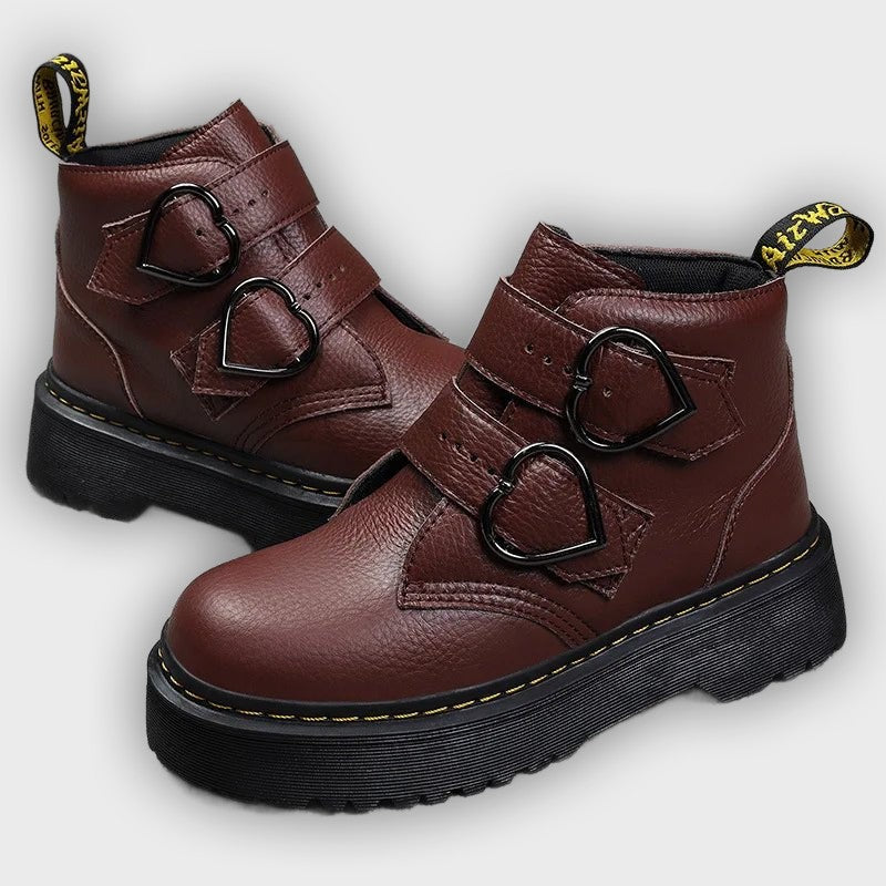Ronja – Women’s Chunky Ankle Boots with Heart Buckle Straps