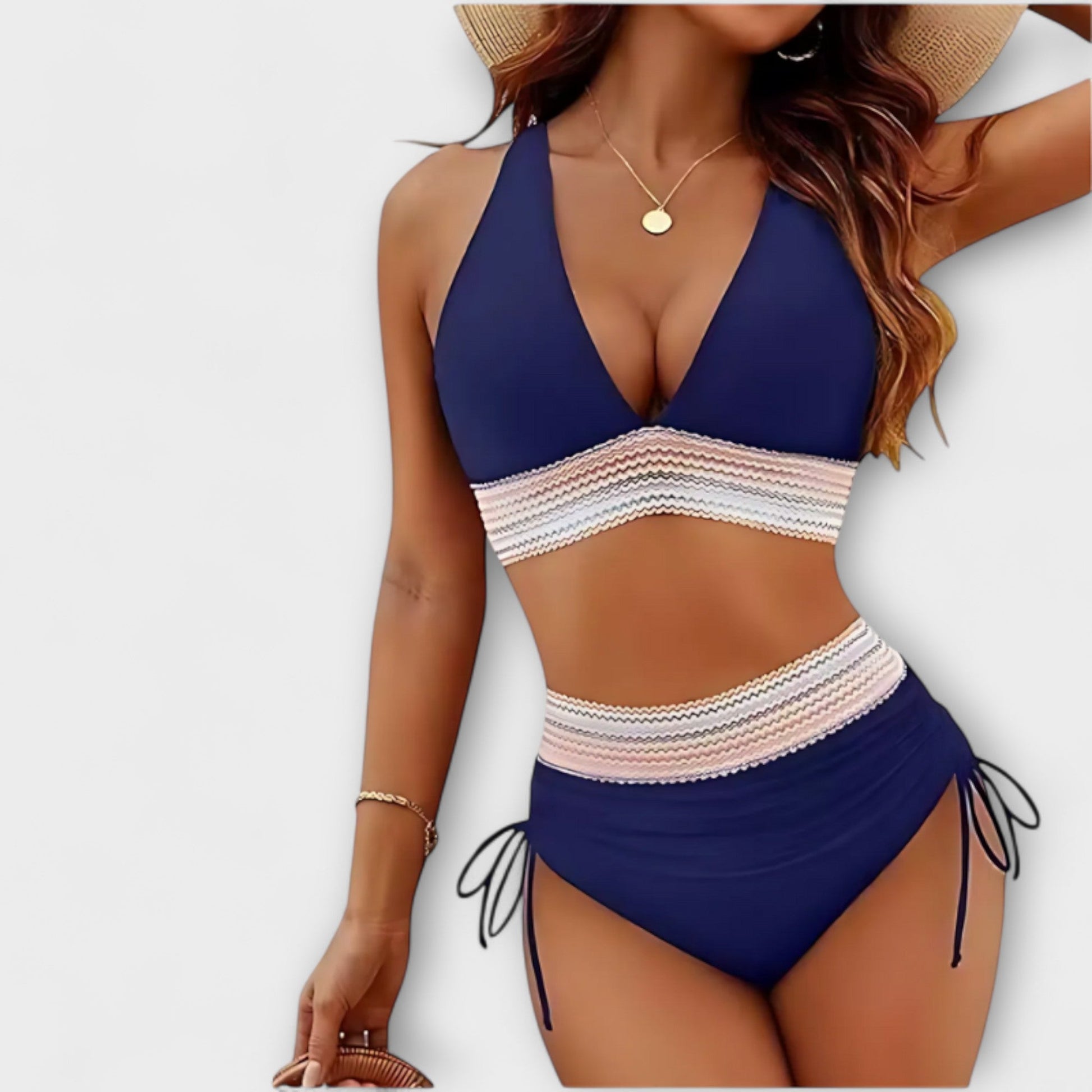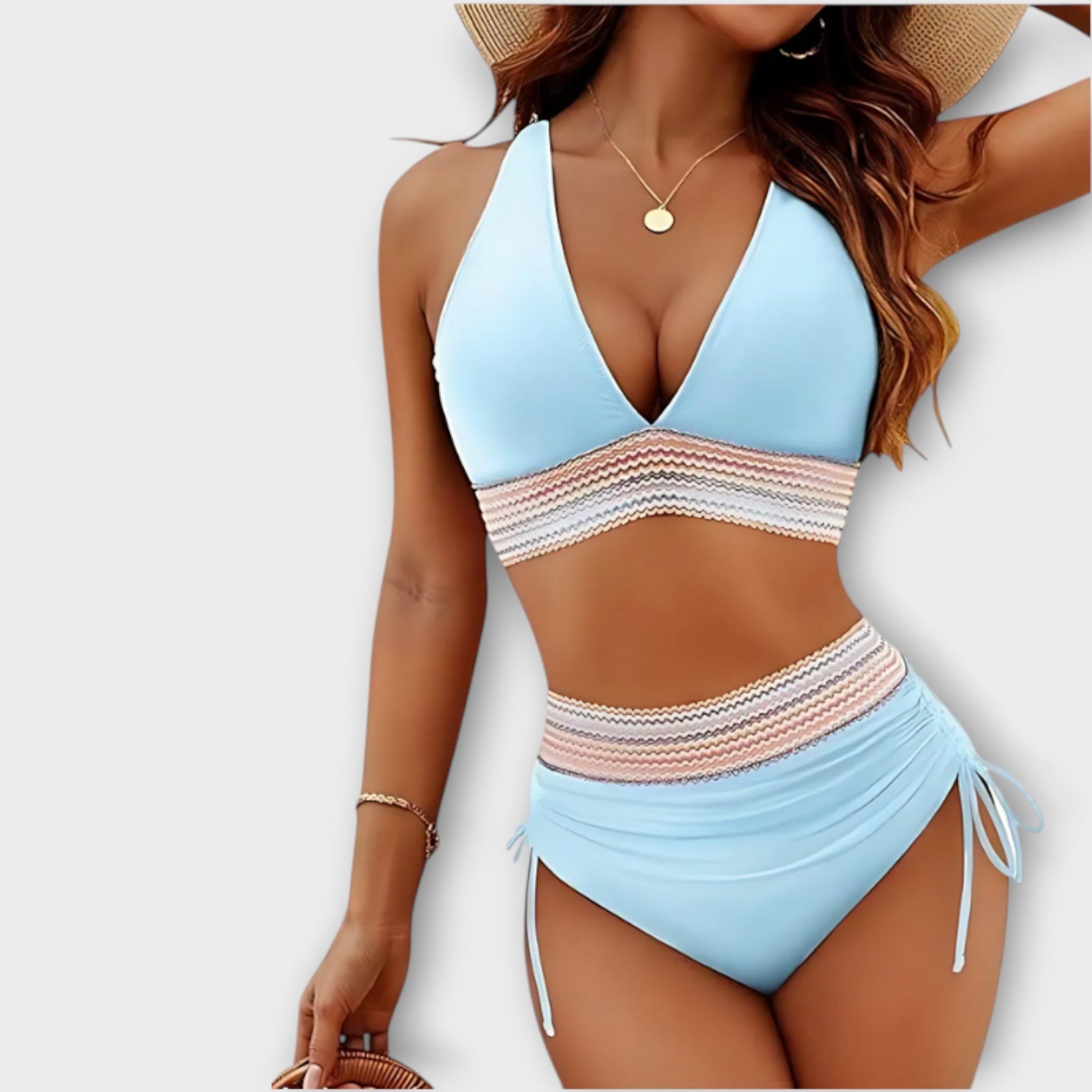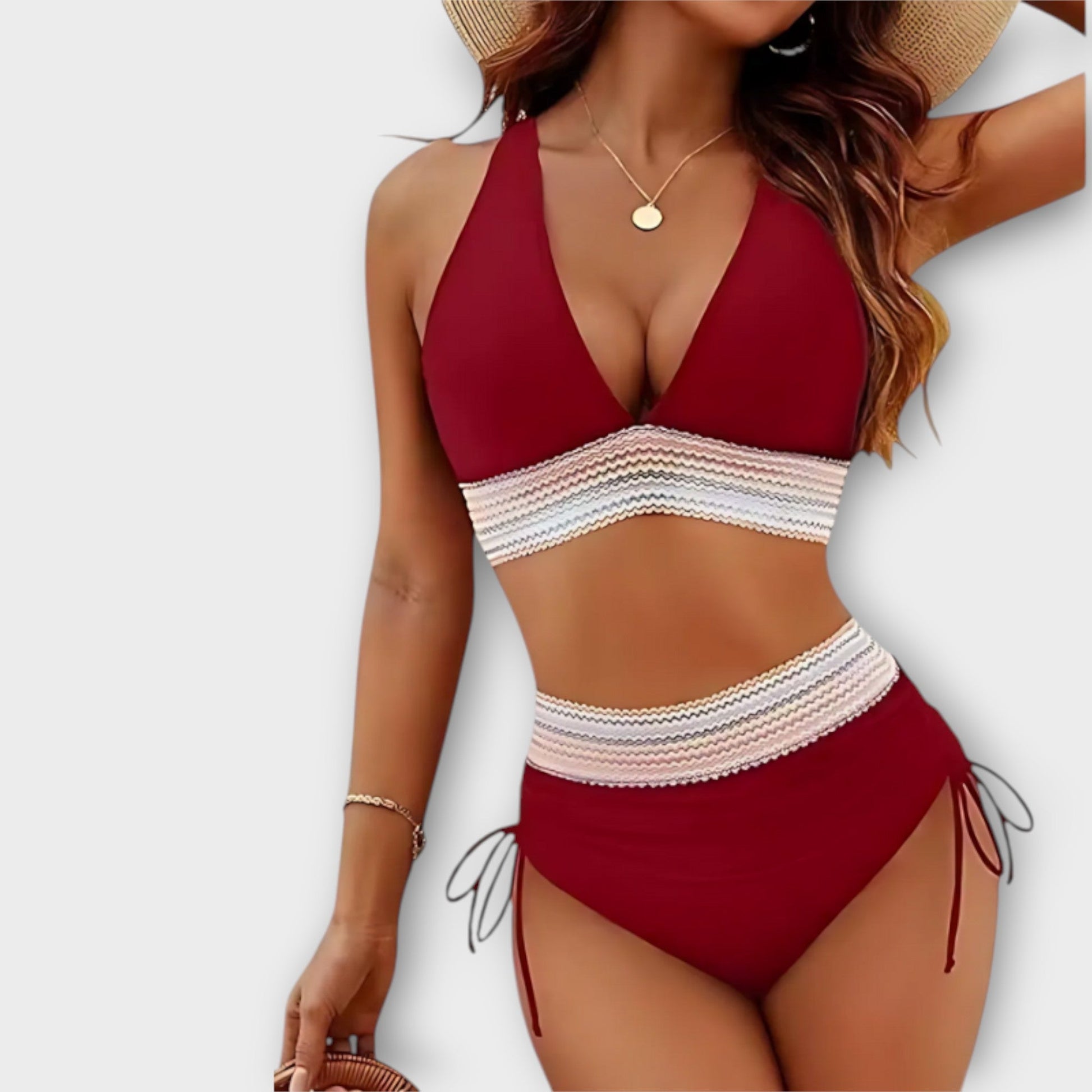 - Gentle Tummy Control: The high waistband of the bikini bottoms gently compresses the tummy, creating a smoother silhouette that flatters your figure without feeling constricting.